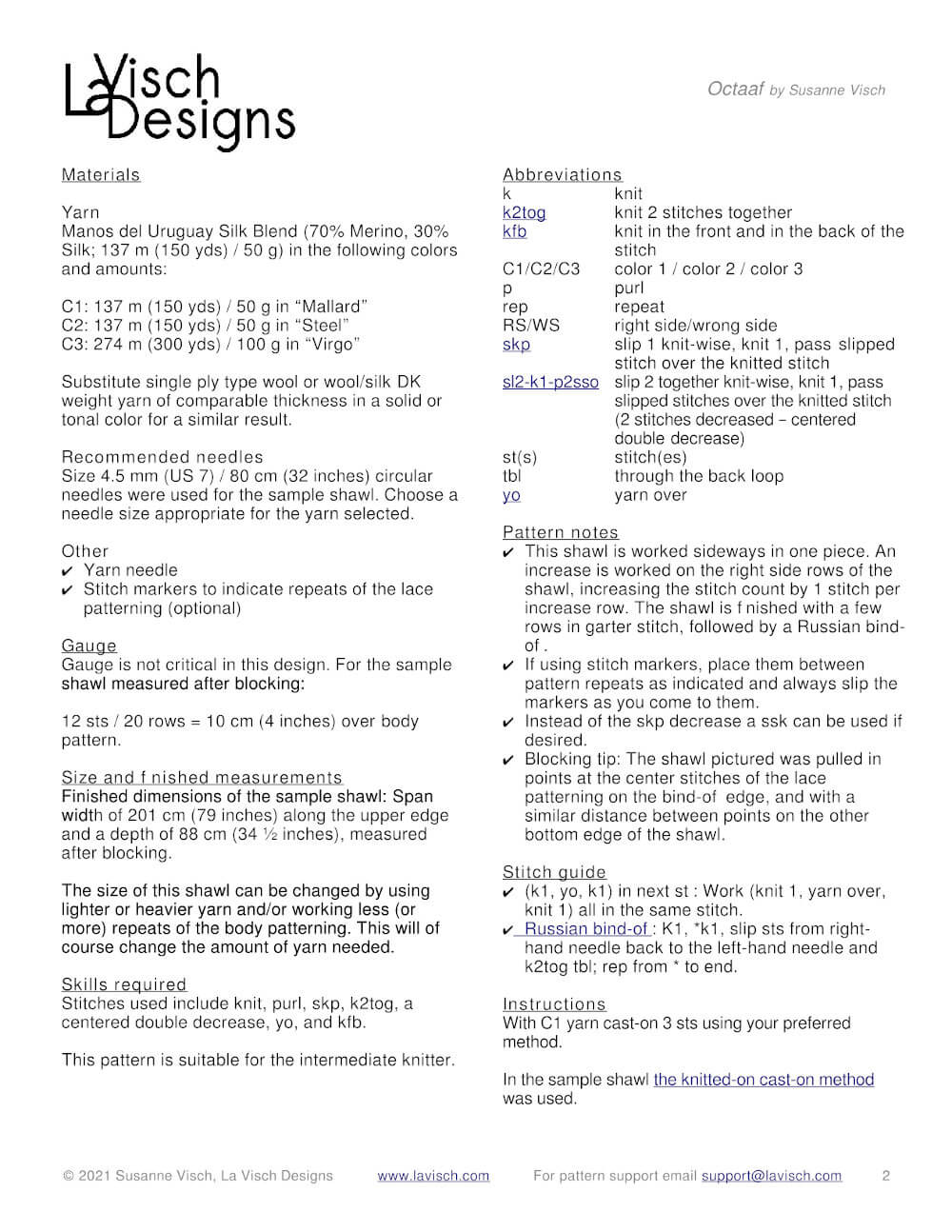 - Gauge: Approx. 11.1 sts / 17.1 rows = 10 cm (4 inches) over body pattern, measured after blocking. Gauge is not critical in this design, but should give you a fabric that you like with the yarn used.