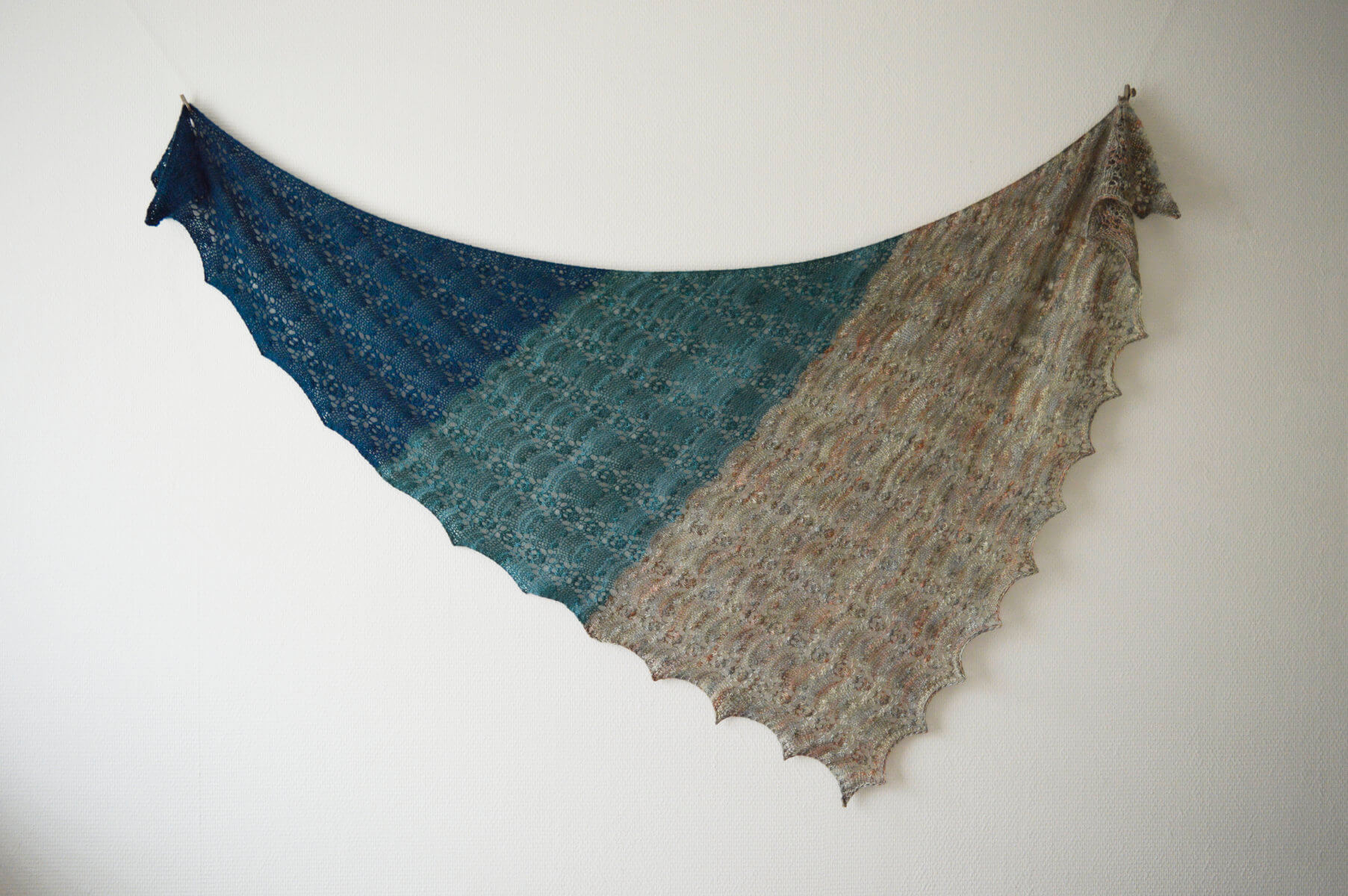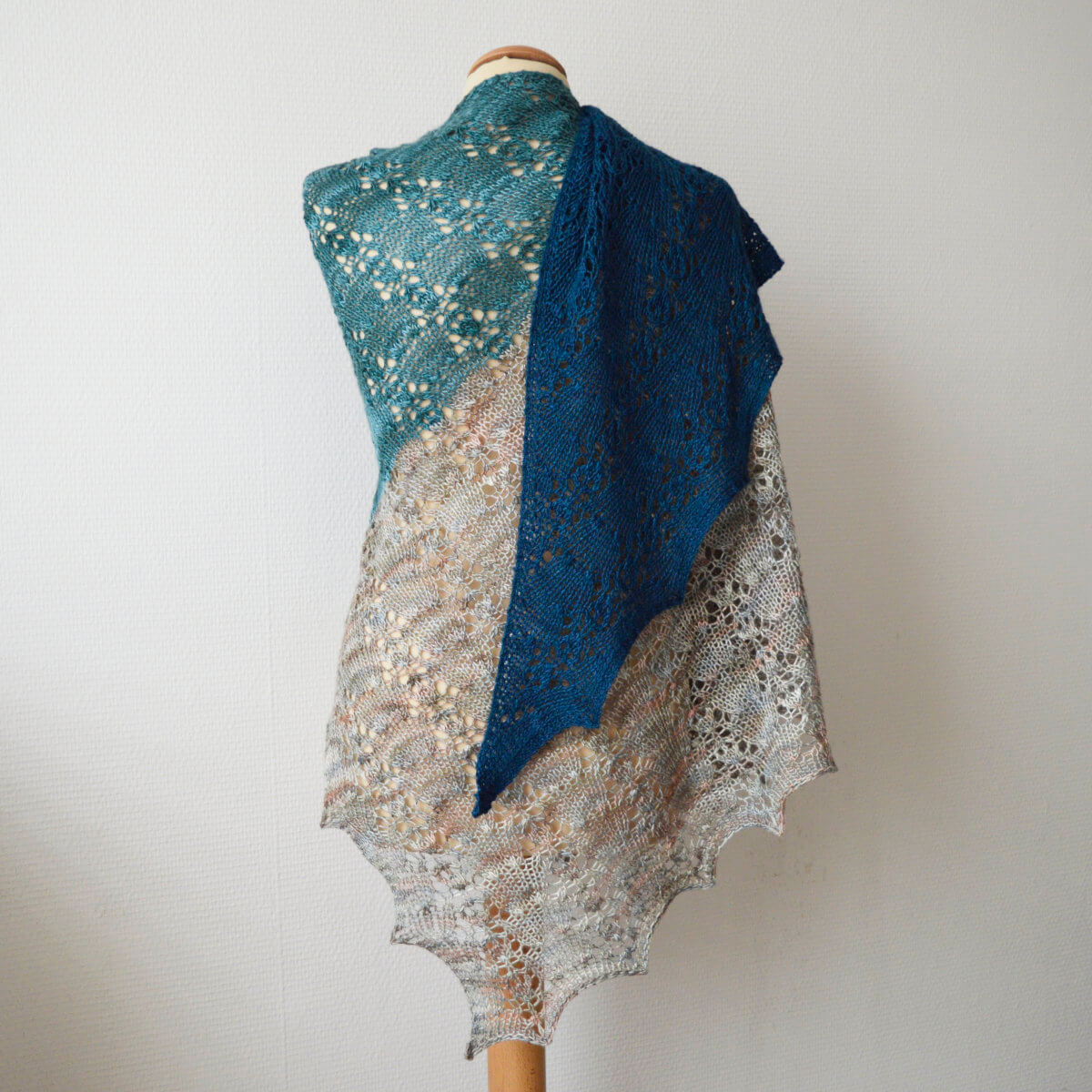 Rose Pink Candy is a fun triangular shawl knit sideways. Knit in an aran/bulky weight yarn, it knits up pretty fast too. This design is however very easy to modify for other yarn weights: just cast on and repeat the body patterning until the shawl has the desired size!
