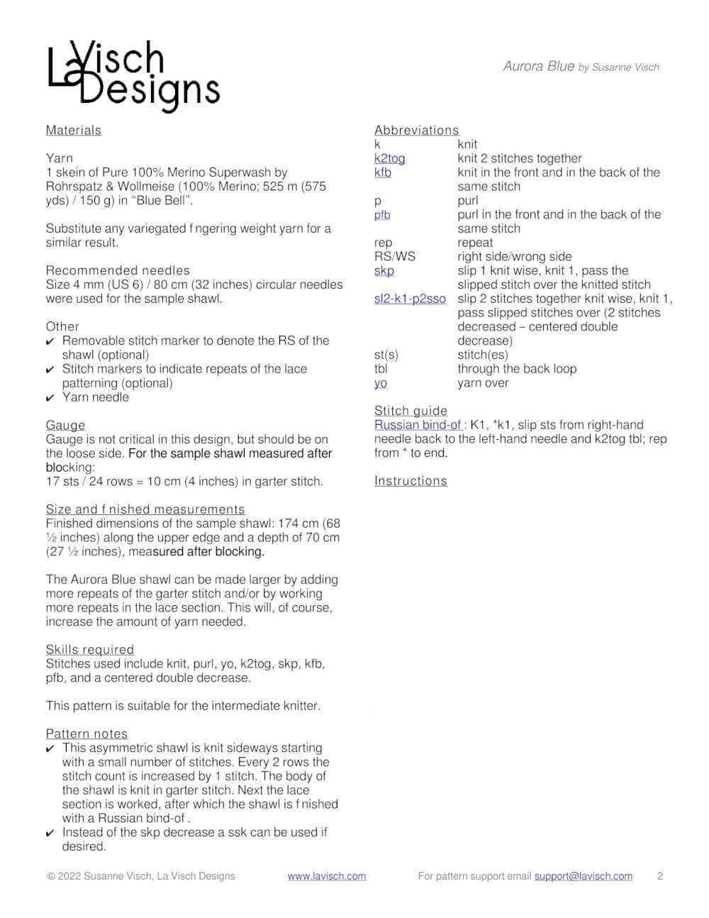 The pattern contains both fully written out as well as charted instructions for the lace.