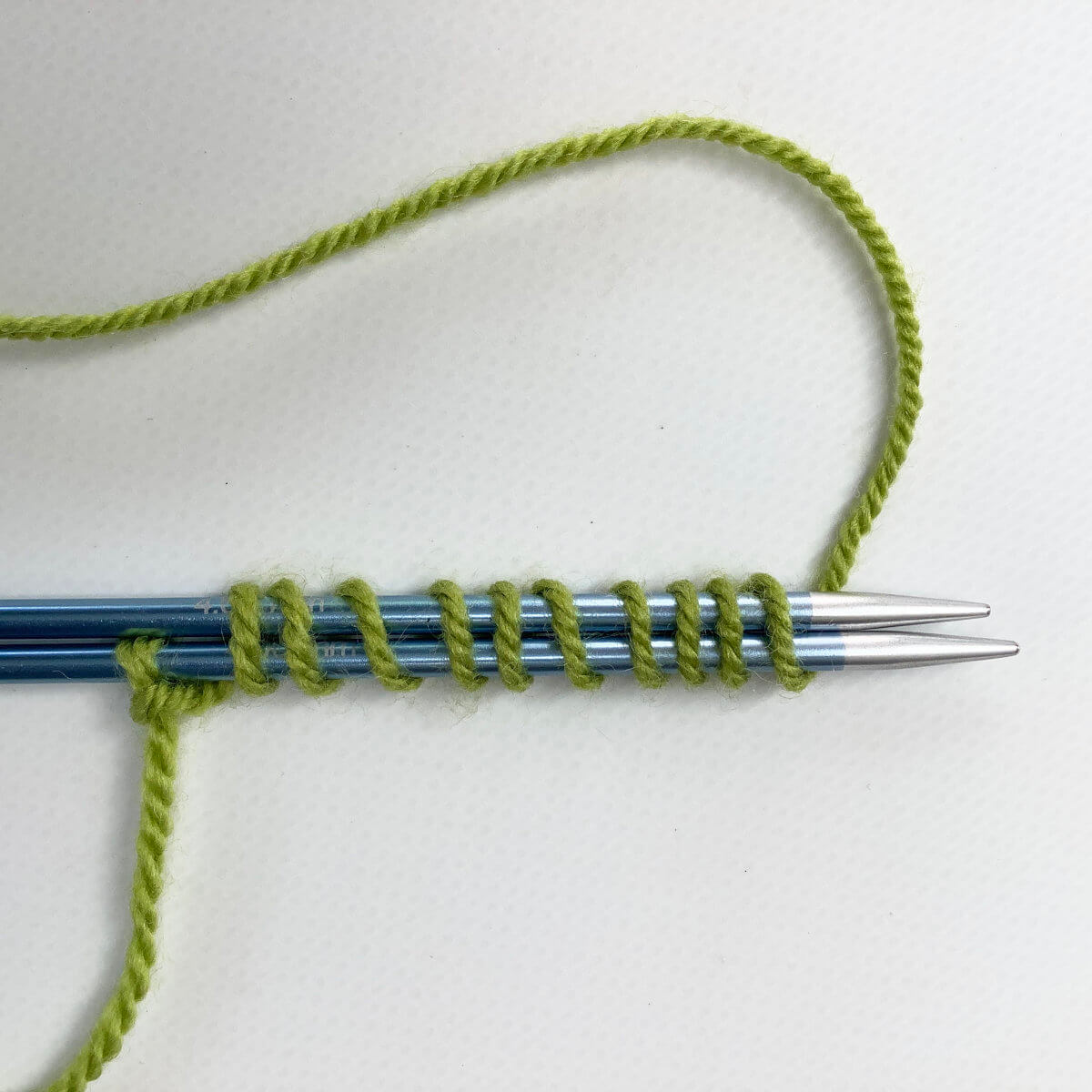 In this example, I want 20 stitches total, so I wrap the yarn 10 times around the needles.